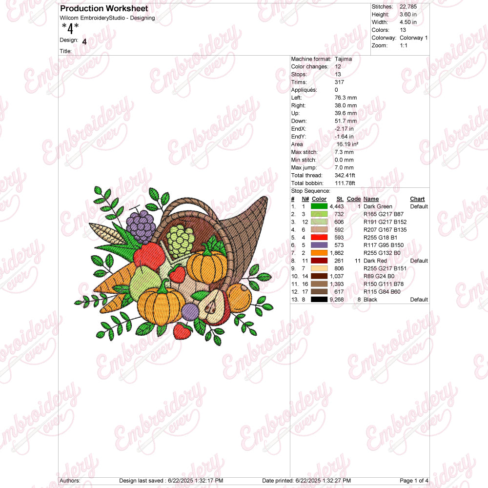 The Horn Of Plenty Thanksgiving Embroidery Design captures the rich symbolism of the harvest season with expert craftsmanship and detailed artistry. Featuring a classic cornucopia overflowing with seasonal fruits, vegetables, and autumn leaves, this design brings a warm, festive touch to quilts, table linens, or seasonal apparel. Crafted to showcase intricate stitching and fine detail, it enhances any Thanksgiving project with a traditional and elegant flair. Ideal for embroidery enthusiasts seeking to add a meaningful and vibrant motif, this design offers versatility and ease of use with compatible embroidery machines, making it a valuable addition to your seasonal collection.