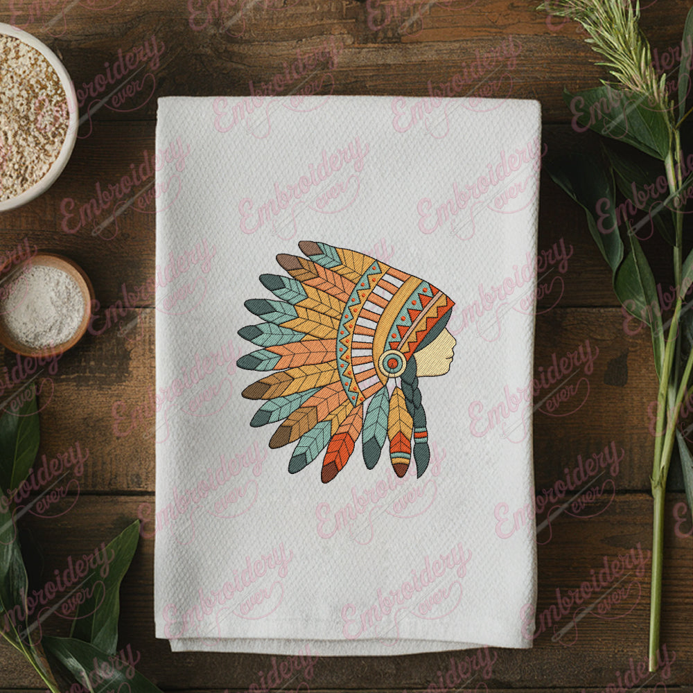 The Native American Thanksgiving Headdress Embroidery Design captures the intricate beauty and cultural significance of a traditional headdress used in Native American celebrations. This detailed embroidery pattern features carefully crafted feather motifs, each embellished with fine stitching that highlights texture and depth. Designed to honor heritage respectfully, the artwork showcases the headdress’s layered feathers and beadwork accents, symbolizing respect, bravery, and gratitude. Ideal for adding a meaningful touch to apparel, home décor, or accessories, this design ensures precision and clarity in every stitch, making it perfect for expert embroiderers aiming to create authentic and visually striking pieces.