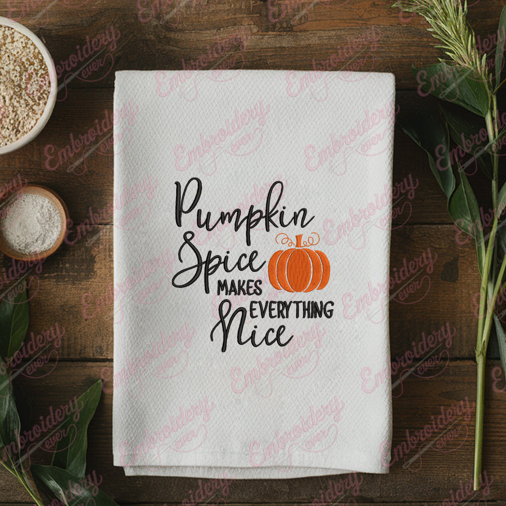 Celebrate the warmth and charm of the season with the Pumpkin Spice Makes Everything Nice Thanksgiving Embroidery Design. Crafted for precision and detail, this design captures the essence of autumn with its inviting theme centered around pumpkin spice—a beloved seasonal flavor. Ideal for adding a festive touch to home decor, kitchen linens, or apparel, this embroidery pattern blends classic fall colors and motifs with expert stitching techniques. It’s perfect for personalizing gifts or enhancing your holiday projects, offering durability and a refined finish that stands up to frequent use. Bring a cozy, seasonal ambiance to any embroidery creation with this expertly crafted design.