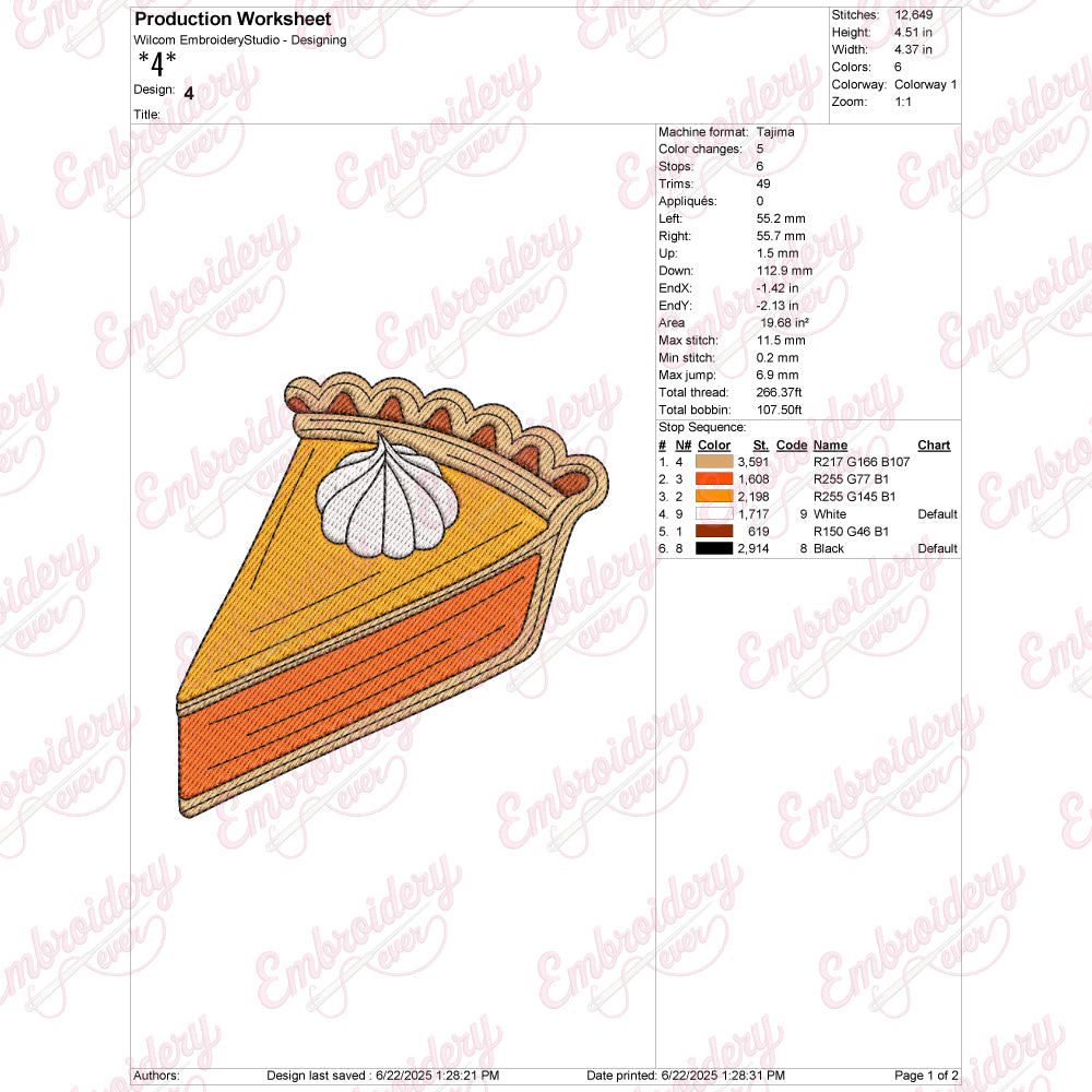 Let your creativity shine with this delightful Pumpkin Pie embroidery design!