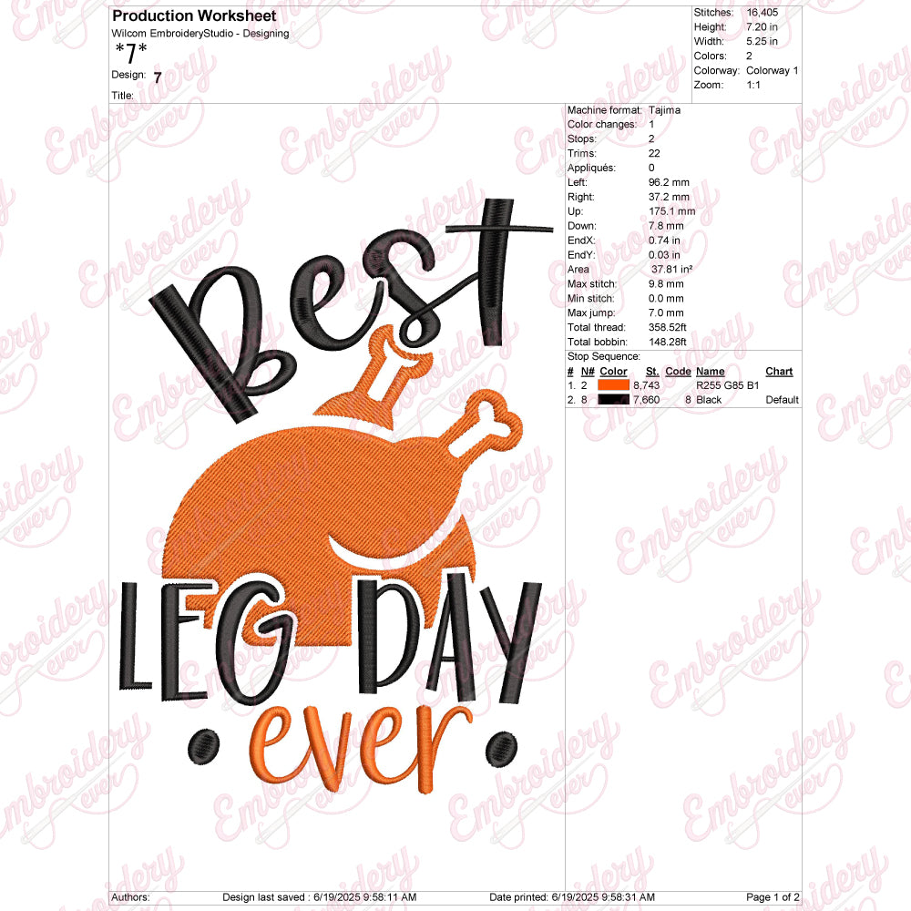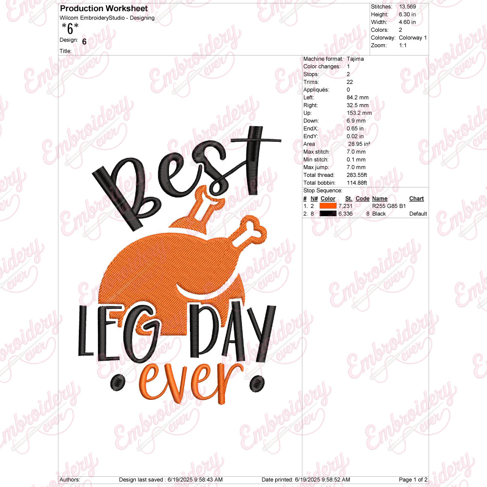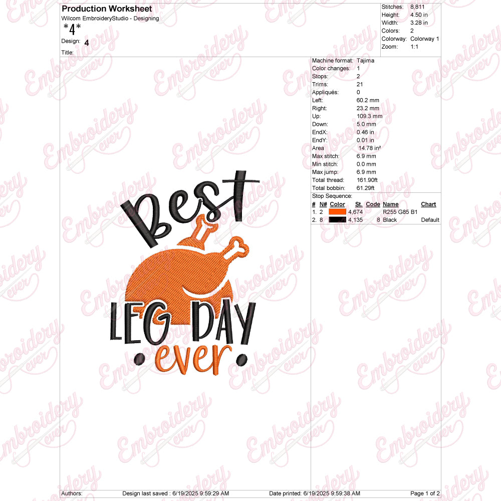 Let your creativity shine with this delightful Best Leg Day embroidery design!
