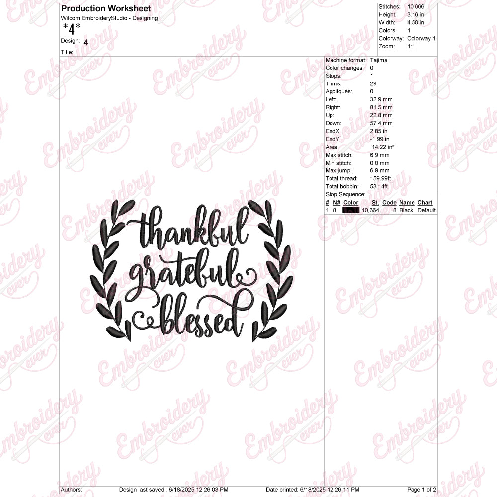 Celebrate the spirit of Thanksgiving with the "Thankful Grateful Blessed" embroidery design, expertly crafted to bring warmth and gratitude to your seasonal projects. This intricate design features elegant typography that beautifully balances the words “Thankful,” “Grateful,” and “Blessed,” making it perfect for embellishing home décor, clothing, or gifts. Designed for precision and clarity, it offers sharp details that stand out on various fabric textures. Ideal for embroidery enthusiasts seeking to add a meaningful and polished touch to holiday items, this design enhances any project with its heartfelt message, helping you create memorable seasonal keepsakes that resonate with family and friends.