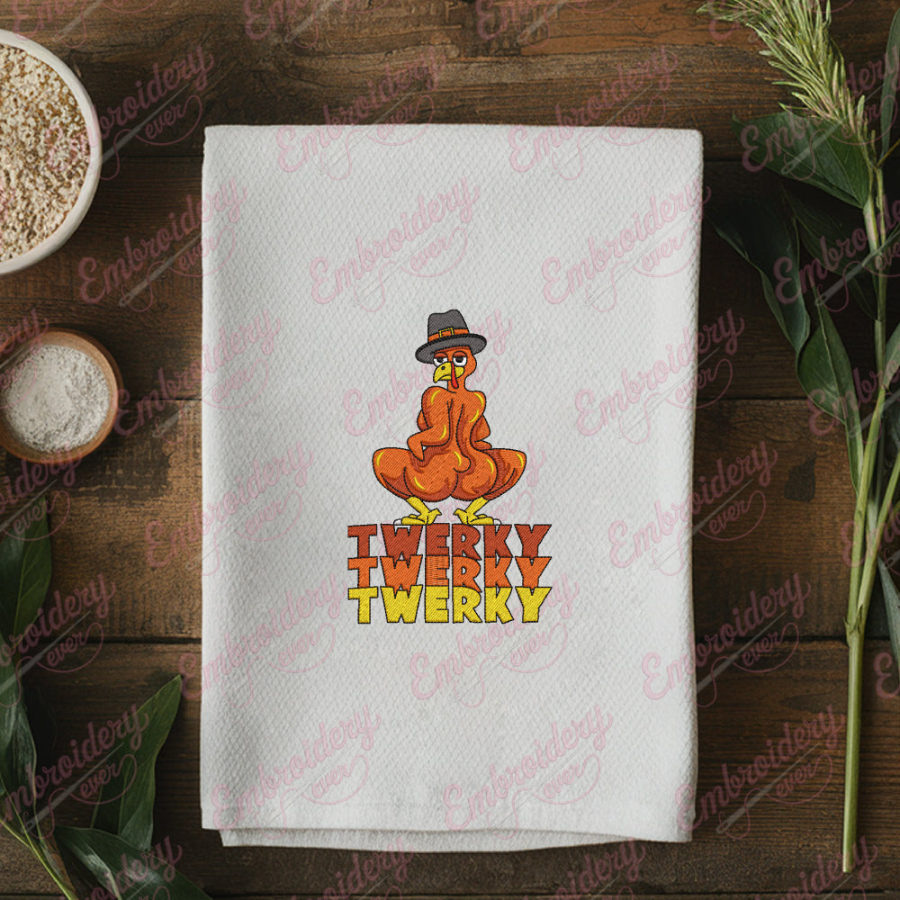 The Twerky Turkey Funny Thanksgiving Embroidery Design brings a playful and festive touch to your holiday projects. Expertly crafted, this design features a whimsical turkey in a lively pose, perfect for adding humor and charm to table linens, kitchen towels, apparel, and more. Its detailed stitching ensures crisp lines and vibrant expression, making it an excellent choice for both machine embroidery enthusiasts and professional crafters. Suitable for various fabric types, this design celebrates Thanksgiving with creativity and personality, helping you create unique, memorable decorations or gifts that resonate with the warmth and fun of the season.