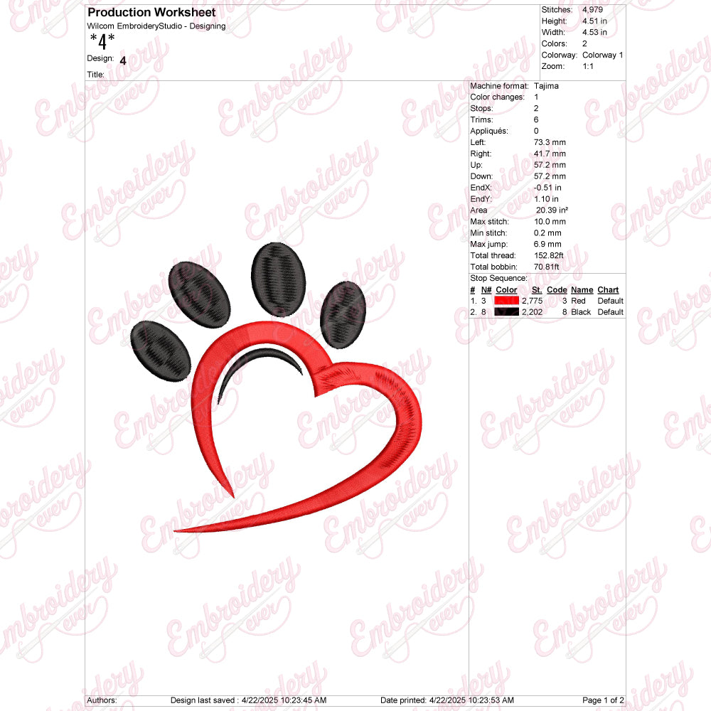 Beautiful Heart Paw Embroid...
