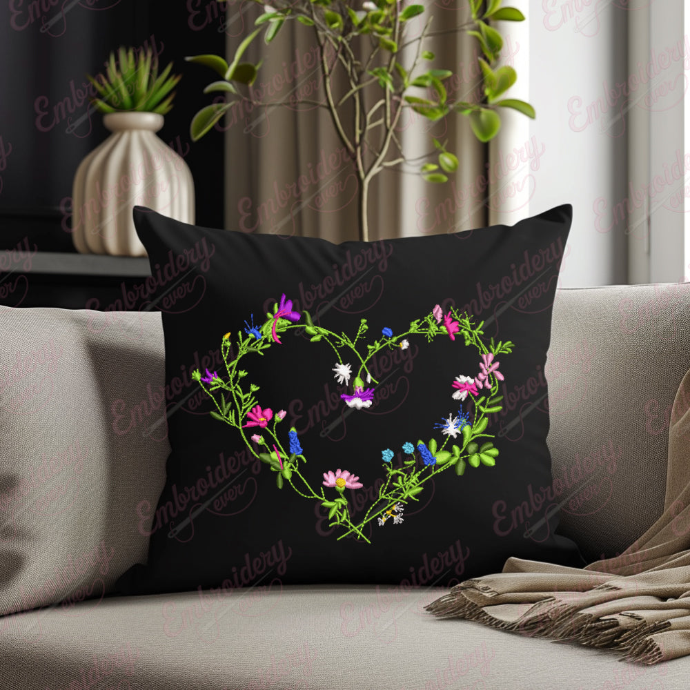 Heart Frame with Flowers Digital Download Machine Embroidery Design