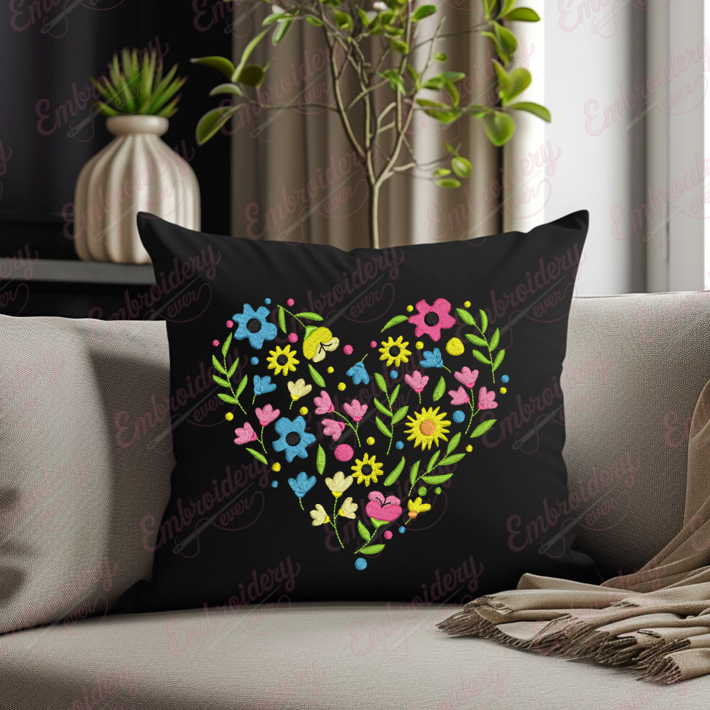 Heart Shaped Colorful Flowers Digital Download Machine Embroidery Design