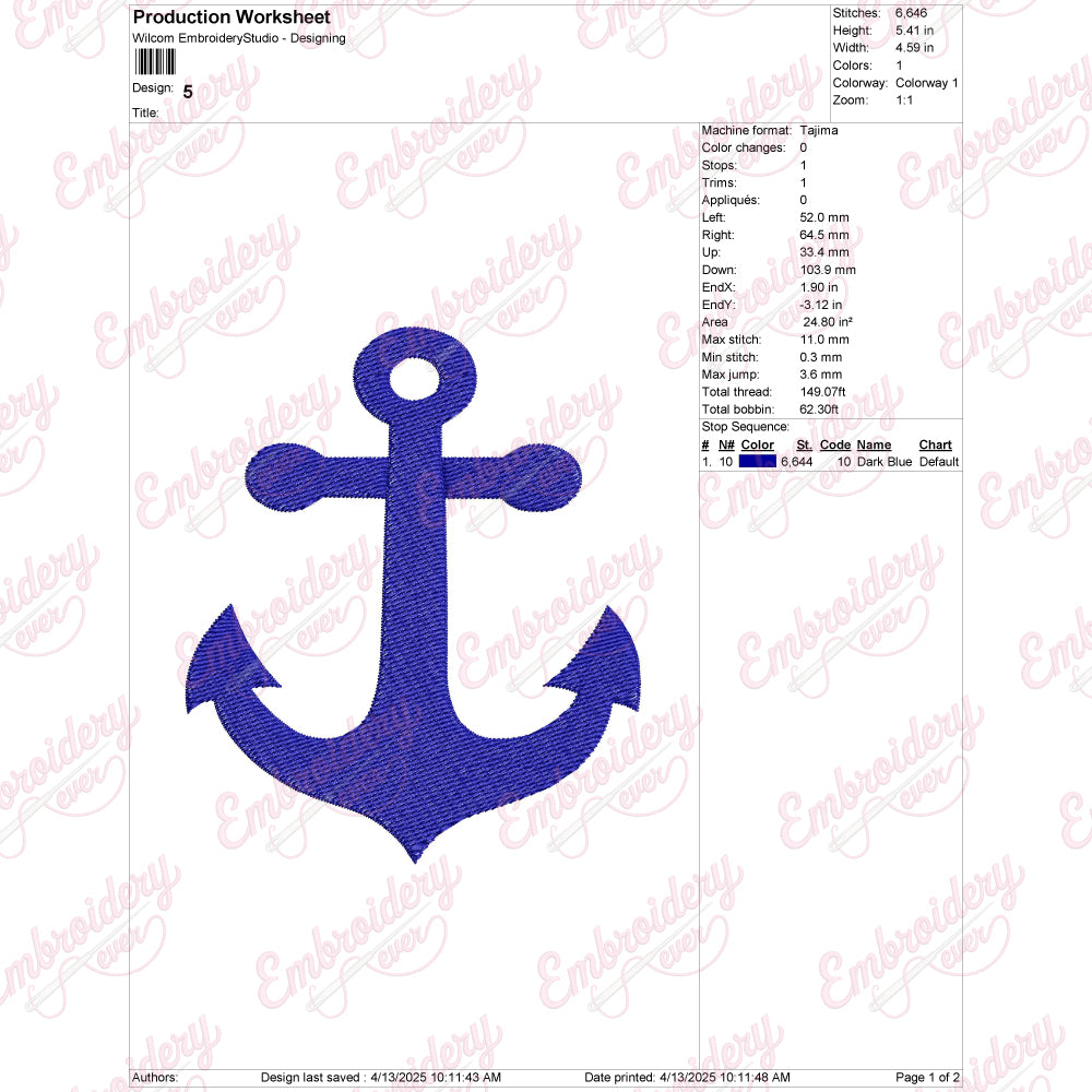 The Anchor Machine Embroidery Design offers a meticulously crafted pattern ideal for enhancing textiles with precision and elegance. Designed for compatibility with a wide range of embroidery machines, this design ensures smooth stitching and consistent results. Its detailed motifs provide a classic yet versatile aesthetic, perfect for adding a refined touch to garments, home décor, or accessories. The design file is optimized for easy integration into your embroidery software, allowing for seamless customization and scaling without loss of quality. Whether you are a professional embroiderer or an enthusiast, this design supports your creative projects with reliable performance and timeless style.
