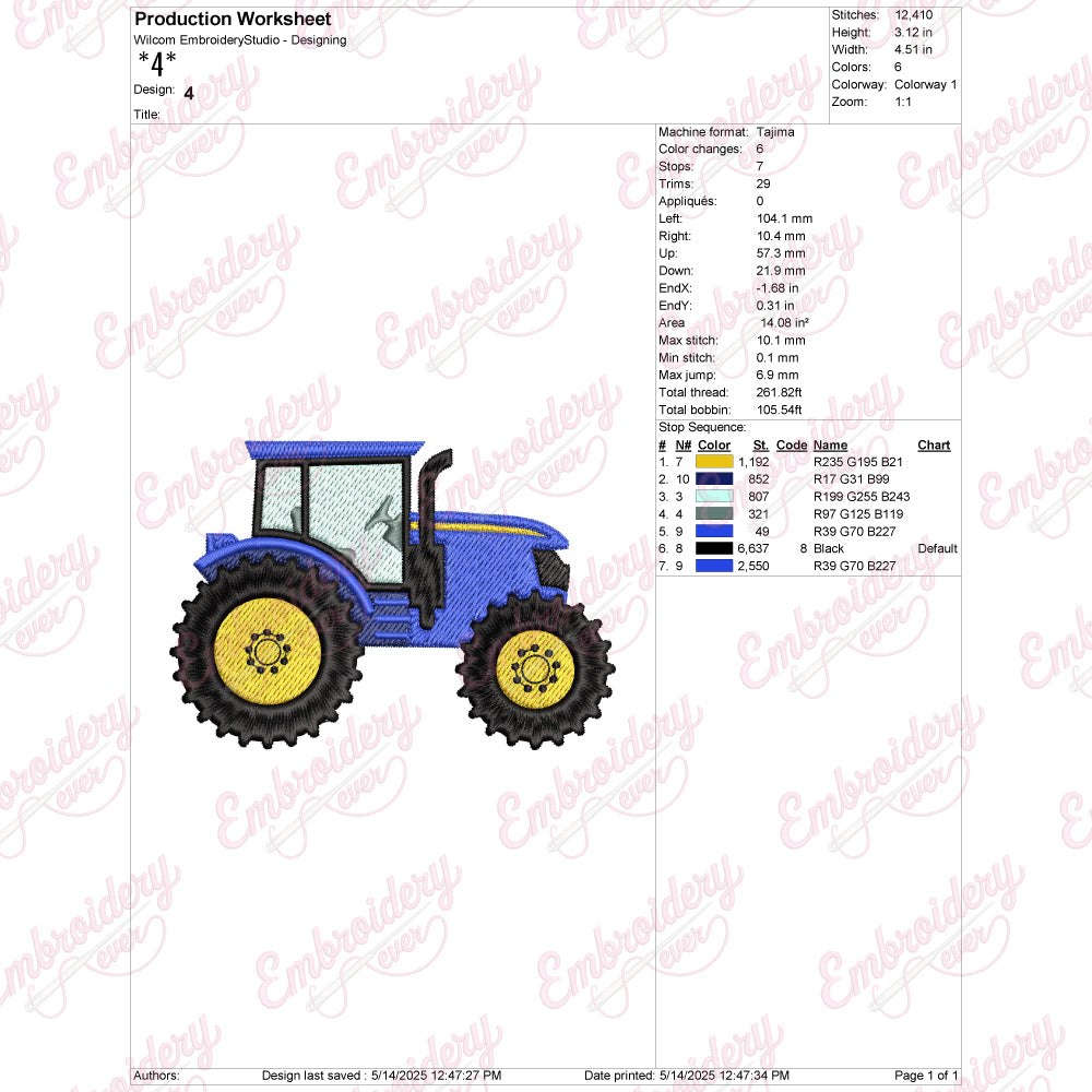 The Blue Farm Tractor Embroidery Design captures the authentic charm of a classic farm tractor in vivid blue tones, making it an ideal choice for agricultural-themed projects. This detailed embroidery pattern features clean lines and intricate stitching that highlight the tractor’s characteristic structure, including wheels, cabin, and engine details. Perfect for enhancing apparel, bags, or home textiles, it offers durability and colorfastness thanks to high-quality embroidery techniques. Whether used for farm-themed gifts or to add a rustic touch to your creations, this design combines precision and style, providing a professional and attractive finish that appeals to enthusiasts of farming culture and vintage machinery alike.