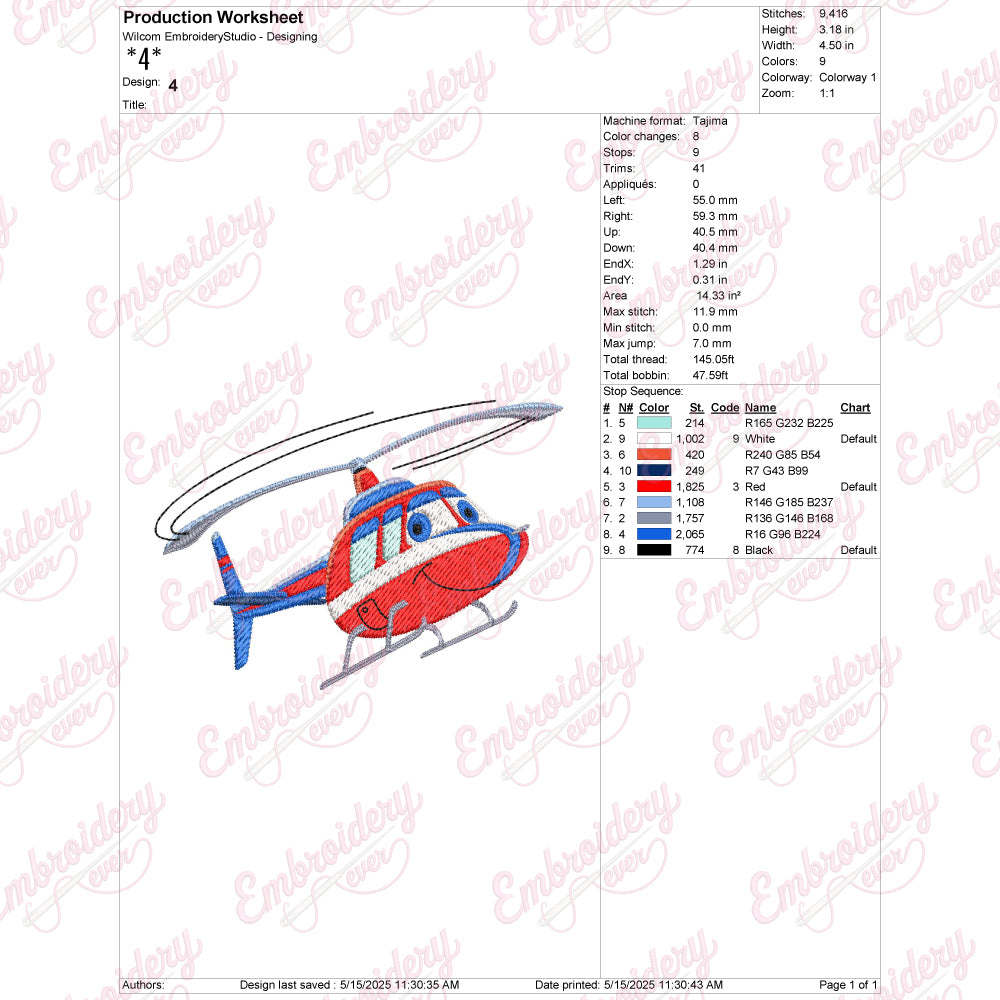 Let your creativity shine with this delightful Helicopter embroidery design!
