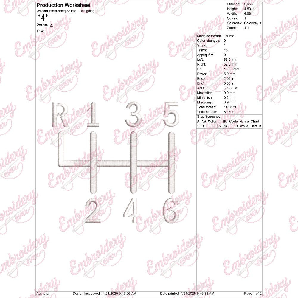 The Gear Shifter Embroidery Design captures the intricate details of a classic automotive gear shifter, making it an ideal choice for enthusiasts and professionals seeking precision in their embroidery projects. This design features clean lines and carefully crafted elements that highlight the mechanical beauty of the gear shifter, offering a sophisticated and technical aesthetic. Perfect for customizing apparel, accessories, or automotive-themed items, it adds a unique touch that reflects both craftsmanship and passion for automotive culture. Its detailed stitching ensures durability and a polished finish, suitable for a variety of fabric types and embroidery machines.