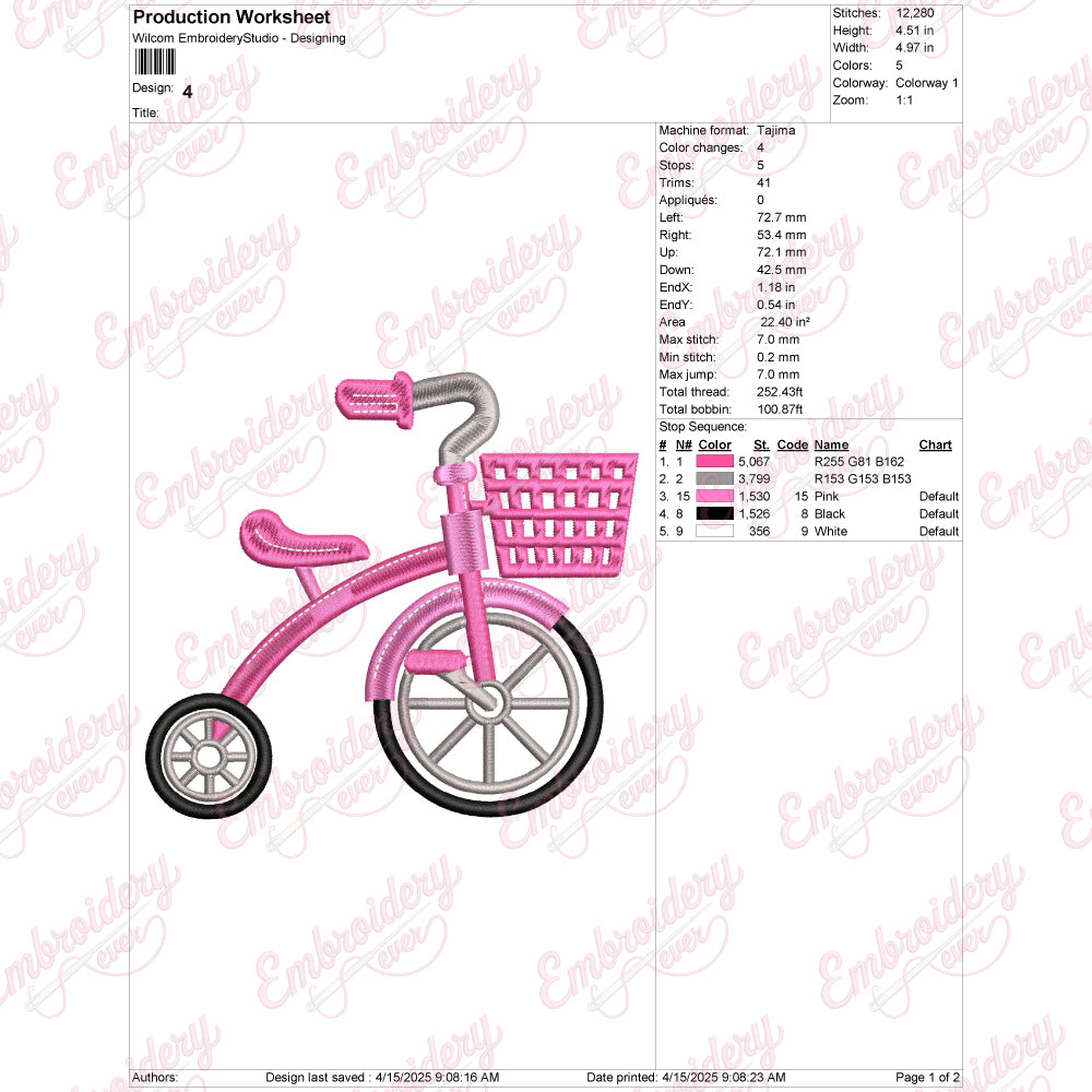 Let your creativity shine with this delightful Tricycle embroidery design!