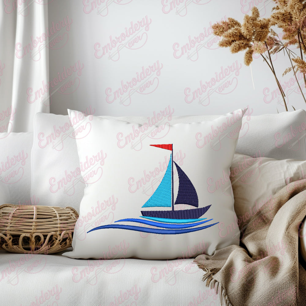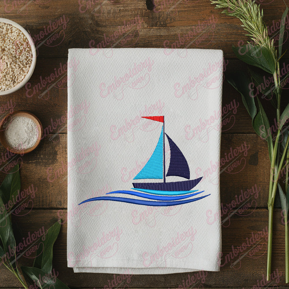Water Wave Sailing Boat Digital Download Machine Embroidery Design