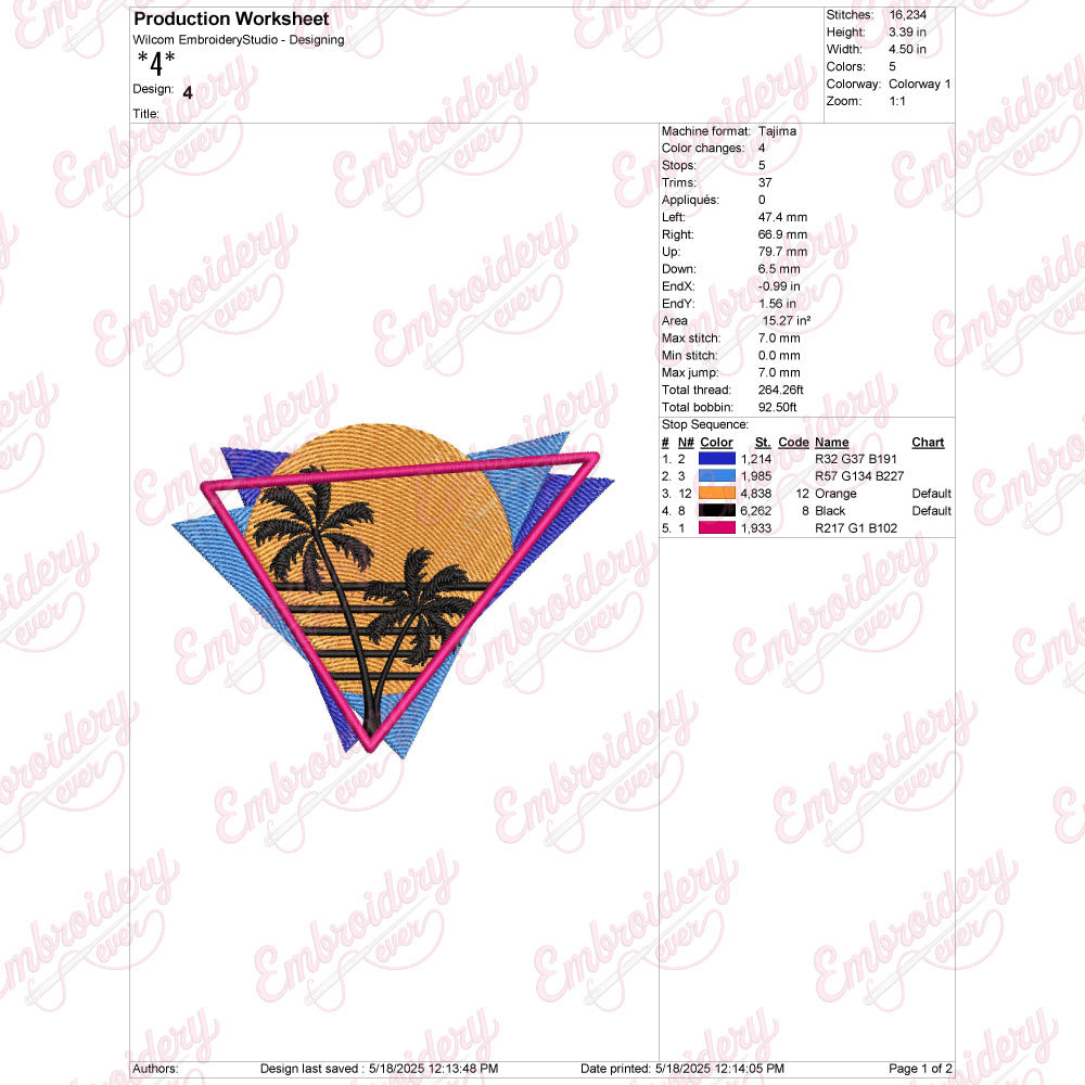 Capture the vibrant spirit of the 1980s with this Retro 80s Style Synthwave Neon Sunset Embroidery Design. Featuring bold neon colors and geometric shapes, this design evokes classic synthwave aesthetics reminiscent of neon-lit cityscapes and glowing sunsets. Meticulously crafted for embroidery, it delivers striking detail and sharp lines, making it ideal for apparel, accessories, or home décor. The high-contrast palette enhances visual impact, while the sunset motif adds nostalgic warmth. Perfect for enthusiasts of vintage style and electronic music culture, this design brings a timeless yet modern edge to your creative projects with impeccable craftsmanship and vivid retro flair.