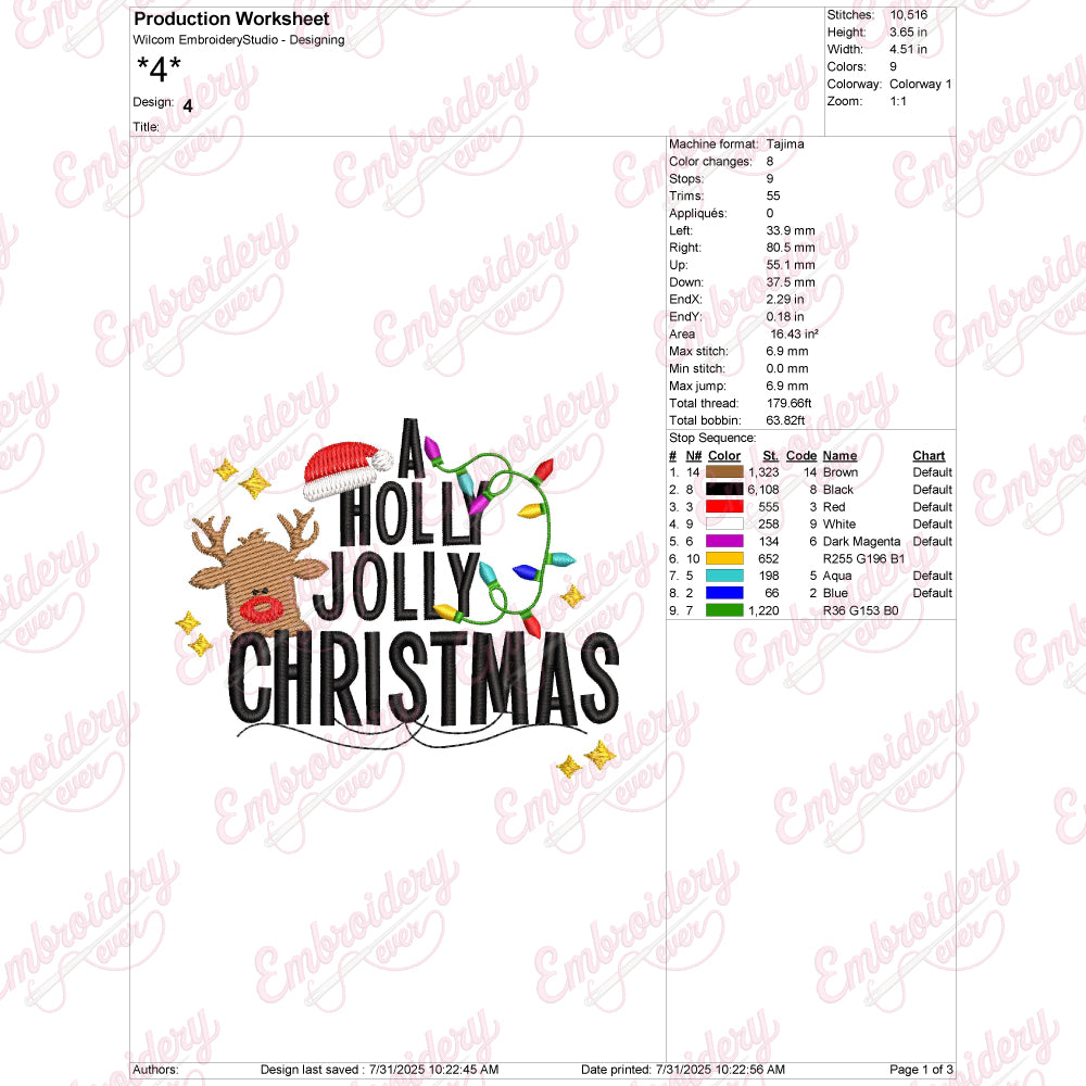 A Holly Jolly Christmas Title Digital Download Machine Embroidery Design