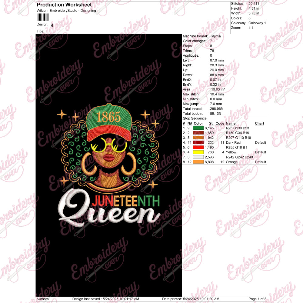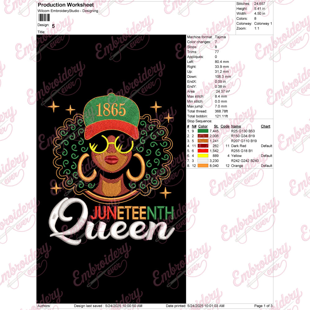 The Black Queen African American Freedom Embroidery Design is a powerful celebration of heritage and empowerment. This intricate design showcases a regal African American queen adorned with traditional elements that symbolize strength, freedom, and cultural pride. Perfect for adding a meaningful and striking visual to garments, accessories, or home textiles, the embroidery highlights detailed patterns that honor the rich history of African American identity. Meticulously crafted for clarity and depth, this design is ideal for those seeking to express cultural roots and promote a message of liberation and dignity through wearable art. Its bold aesthetic makes it a standout choice for creative projects valuing authenticity and empowerment.