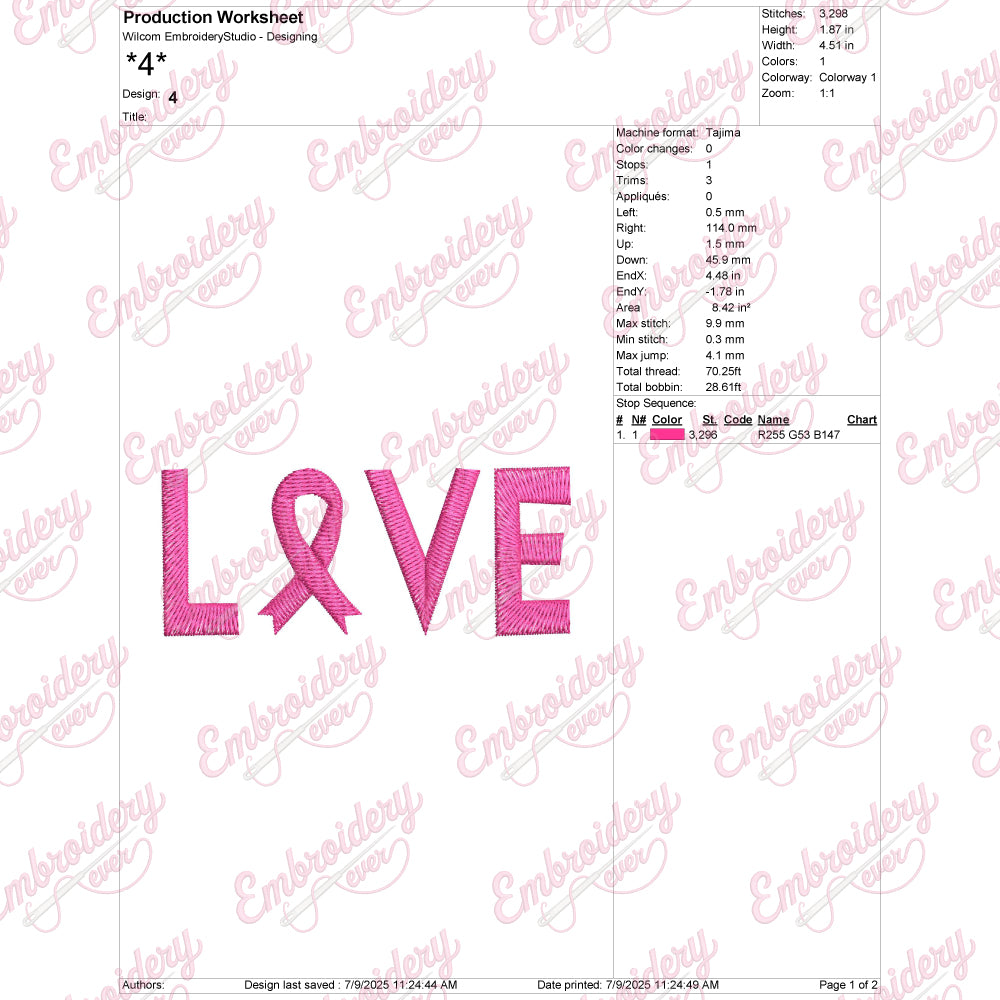 Breast Cancer Love Digital Download Machine Embroidery Design