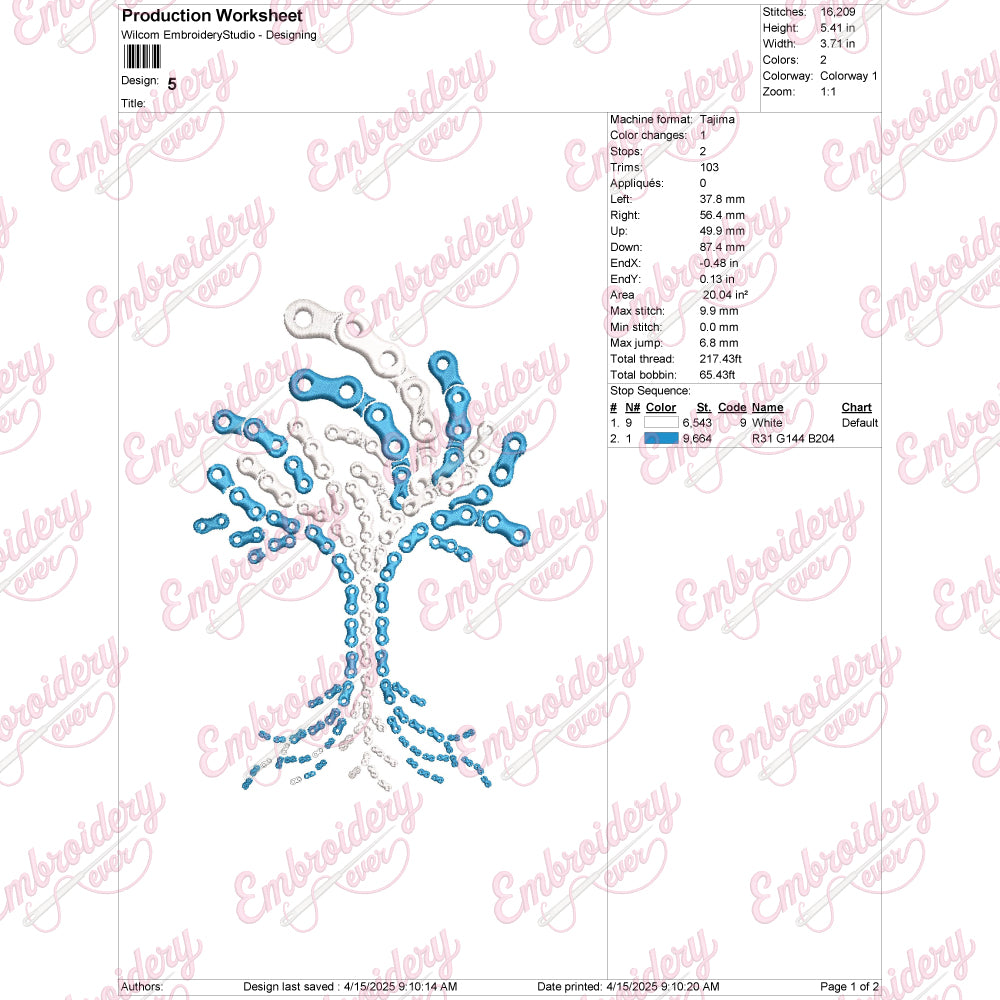Chain Tree Embroidery Design