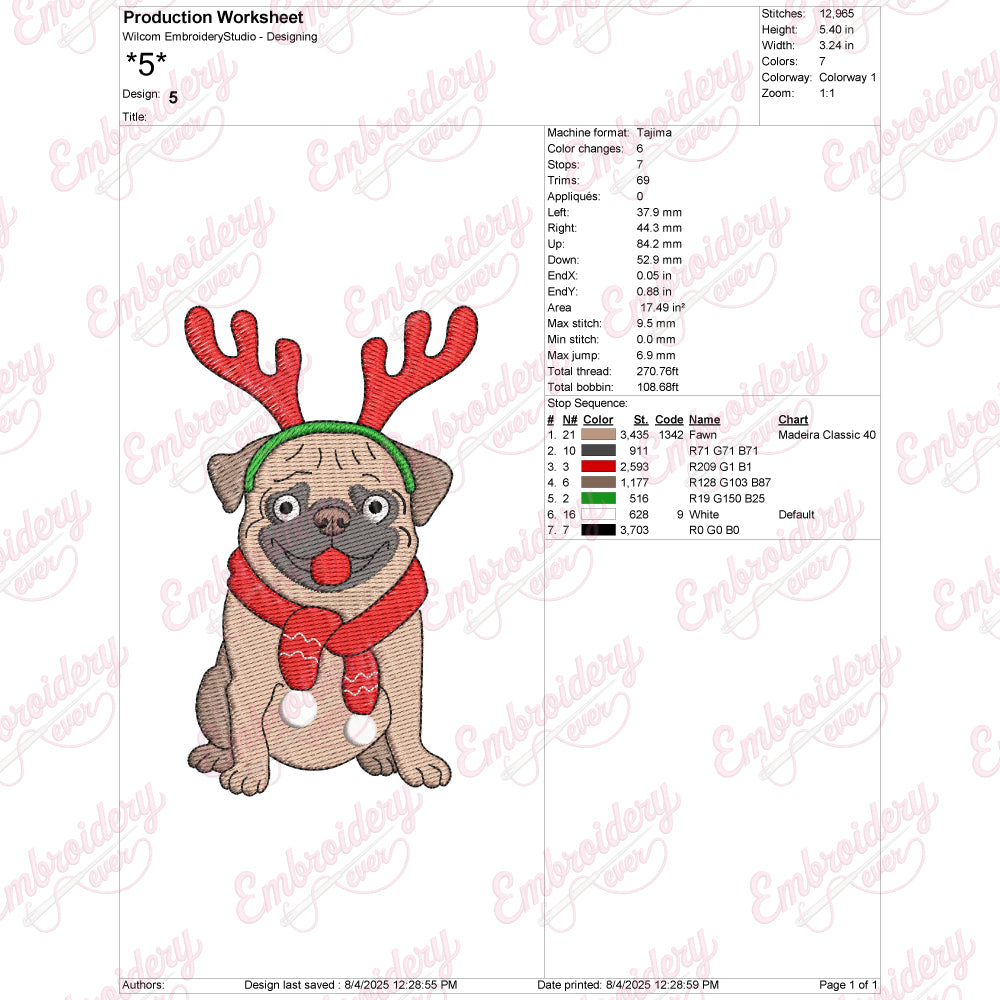 Let your creativity shine with this delightful Christmas Pug Parade embroidery design!