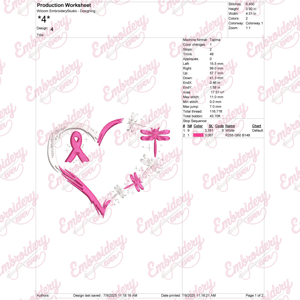 Let your creativity shine with this delightful Dragonfly Dreams Supporting Breast Cancer embroidery design!