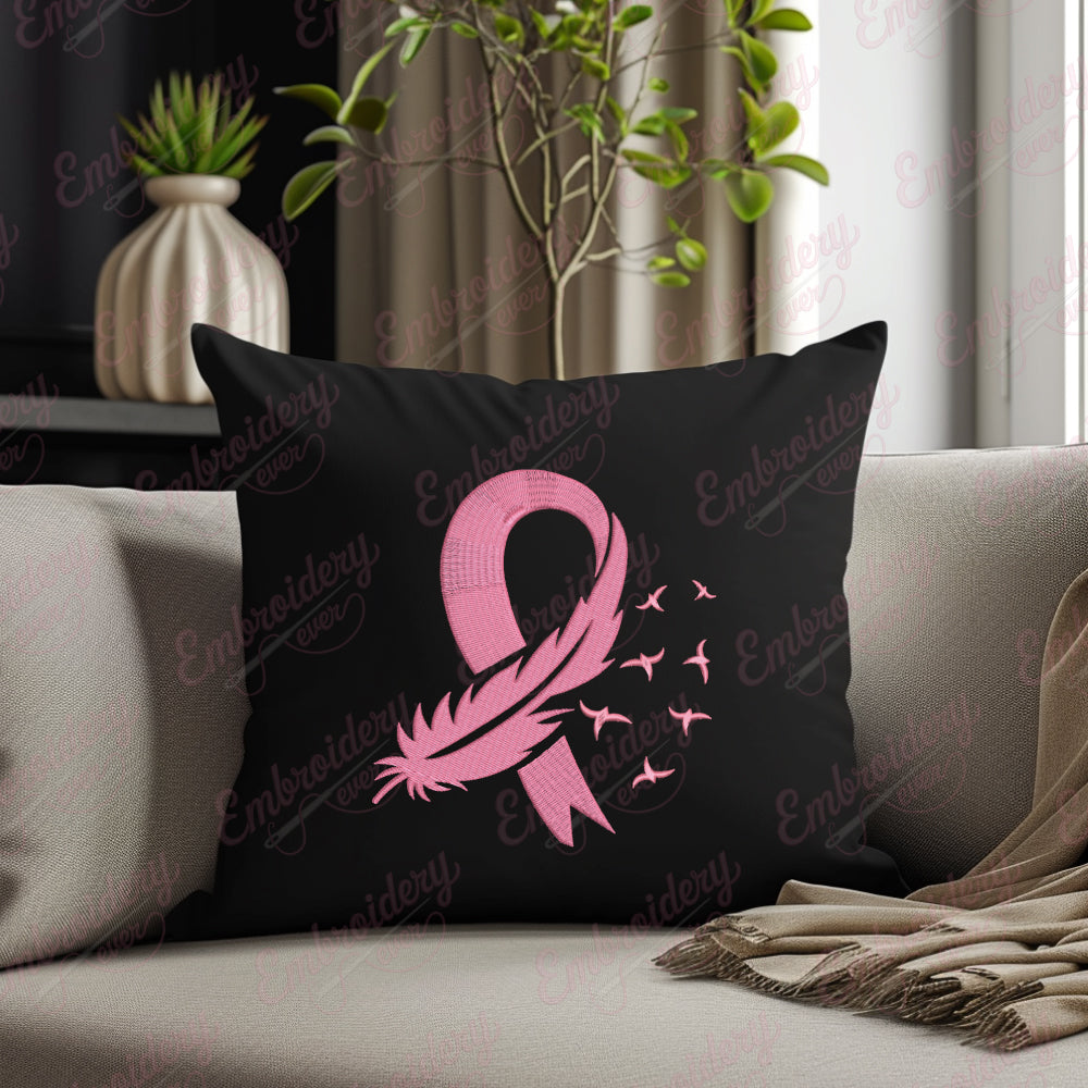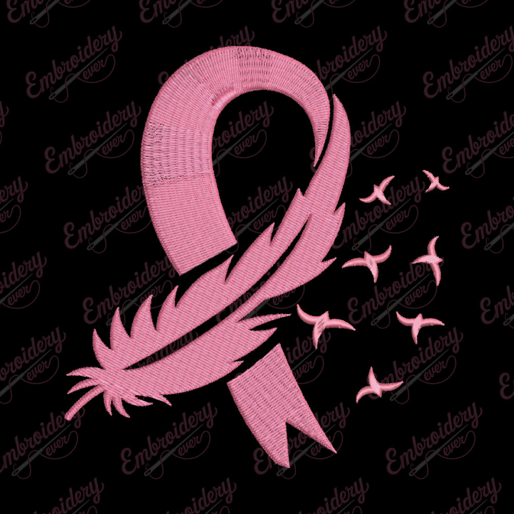 Feather Pink Ribbon Breast Cancer Digital Download Machine Embroidery Design