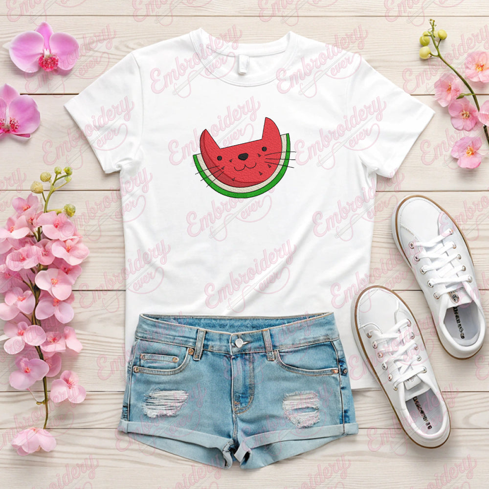 Let your creativity shine with this delightful Funny Cat Watermelon embroidery design!