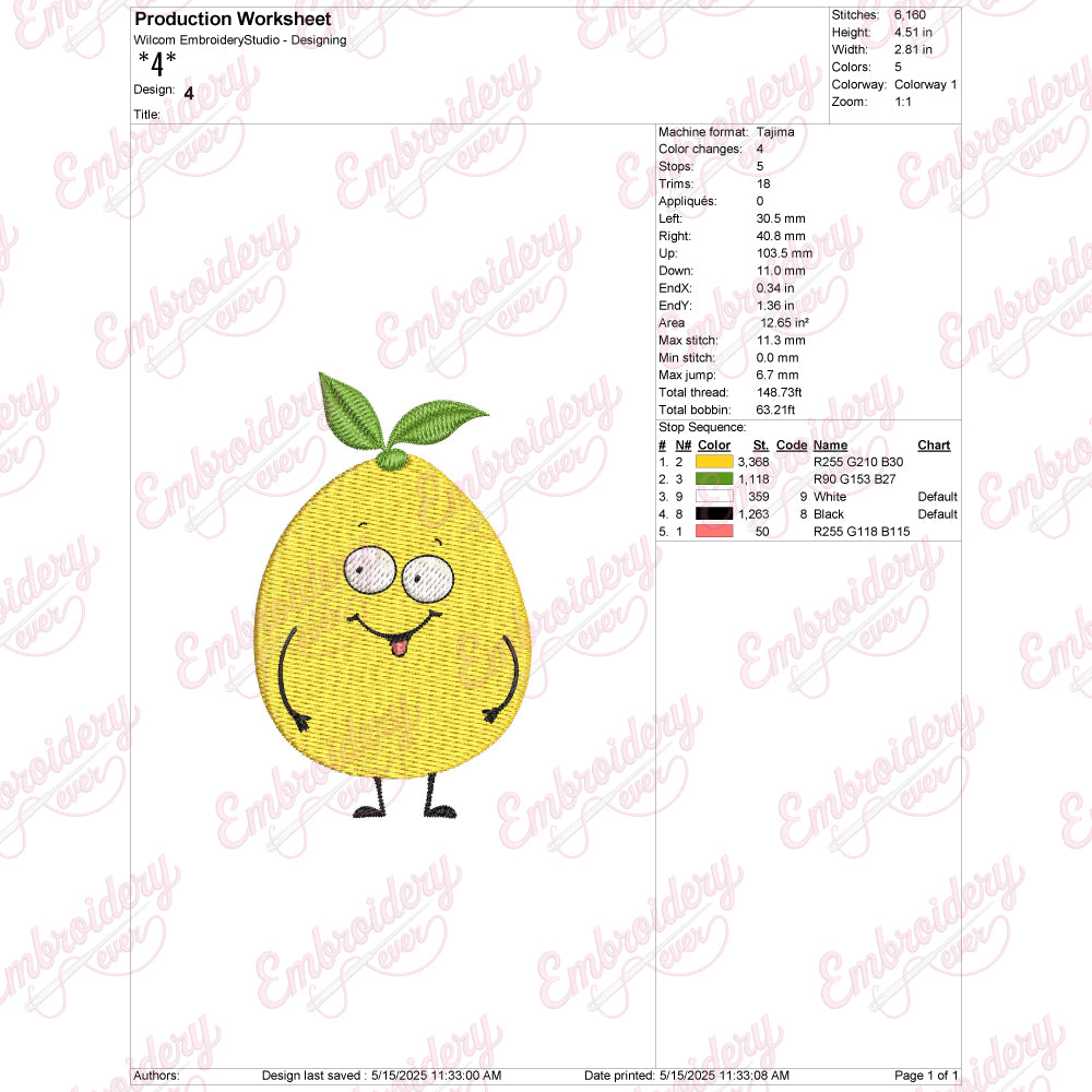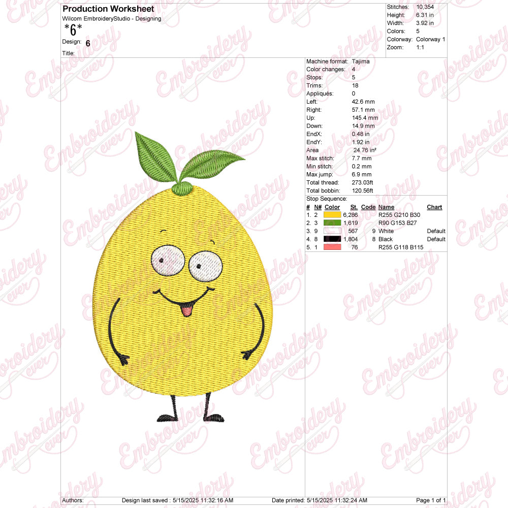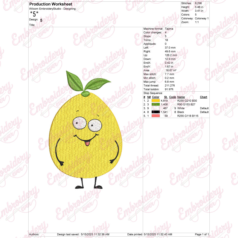 Let your creativity shine with this delightful Lemon embroidery design!