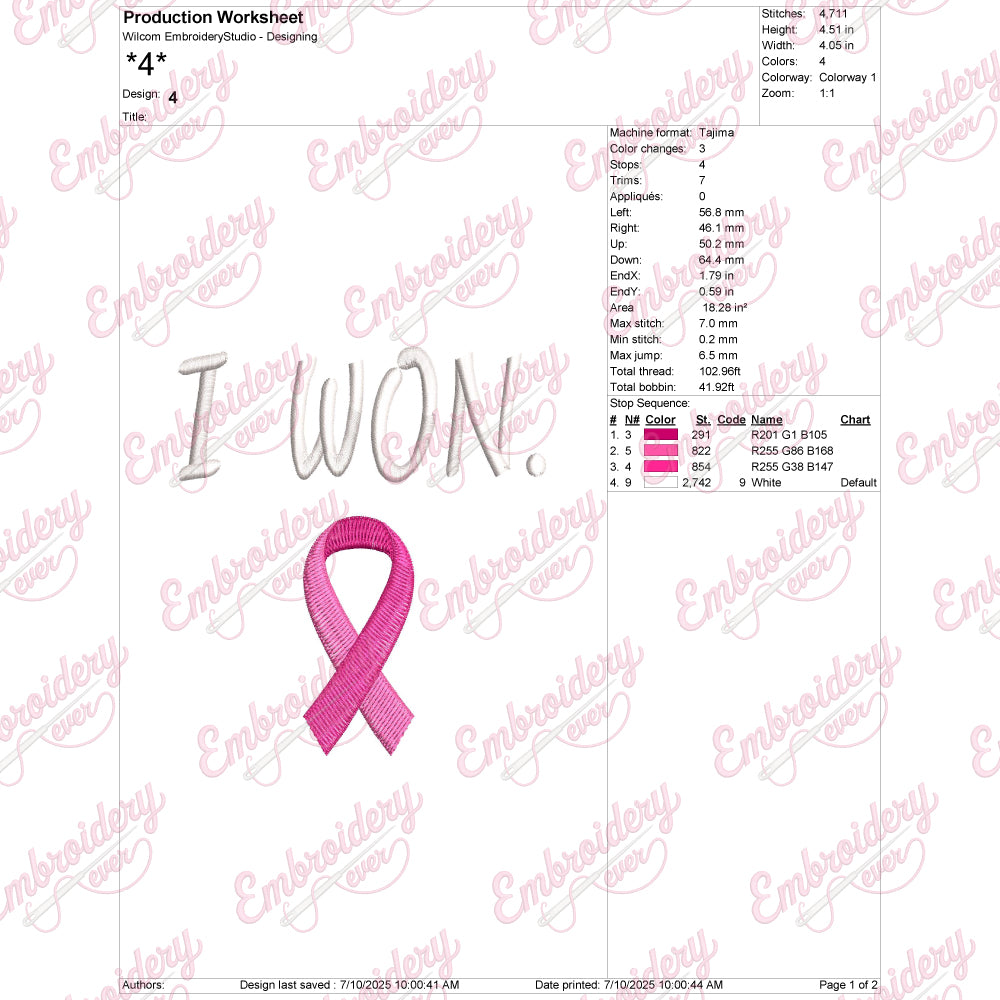 Let your creativity shine with this delightful I Won Breast Cancer Survivor embroidery design!