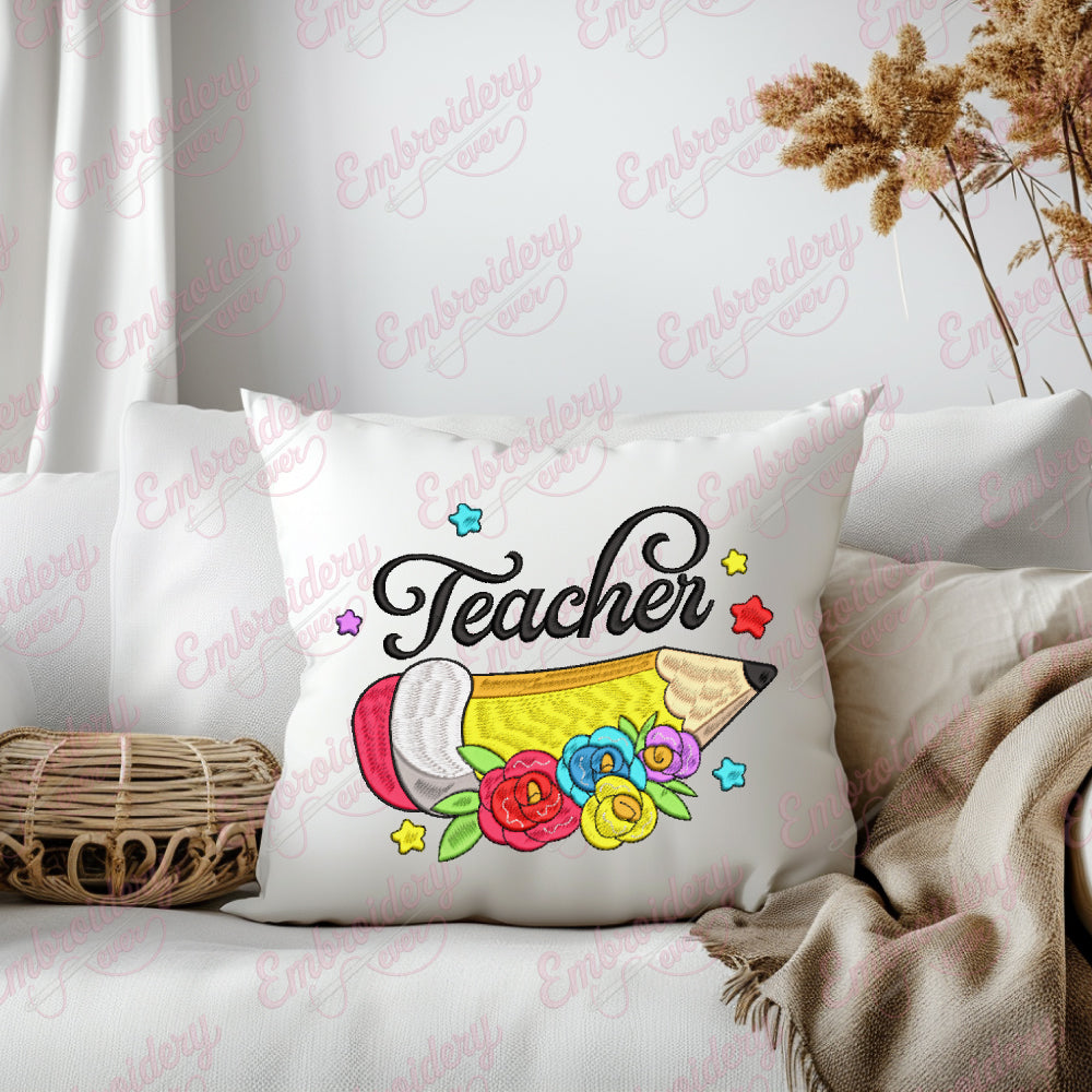 Let your creativity shine with this delightful Pencil and Happy Teacher embroidery design!