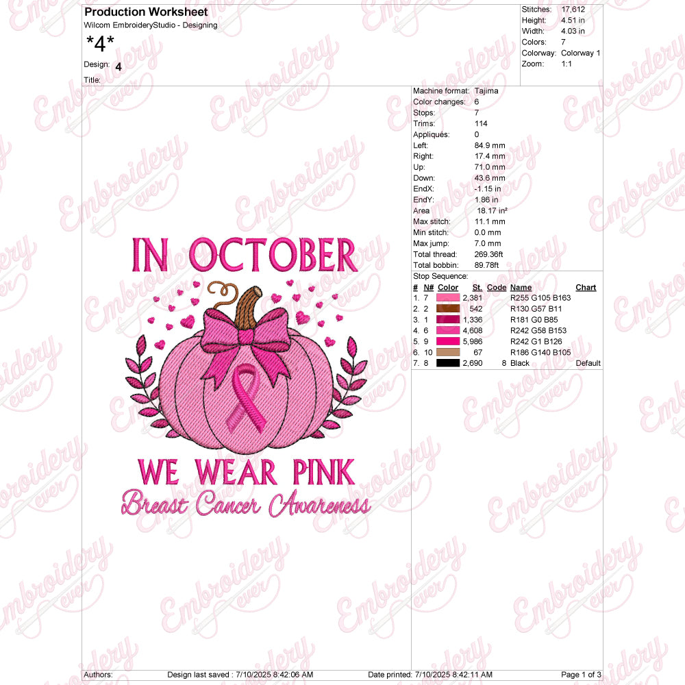 Let your creativity shine with this delightful Pink Pumpkin For Breast Cancer embroidery design!