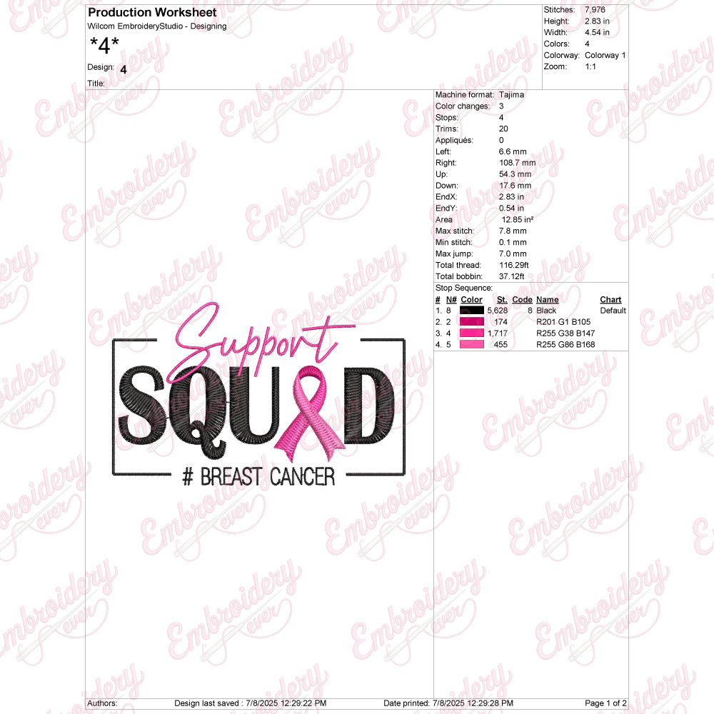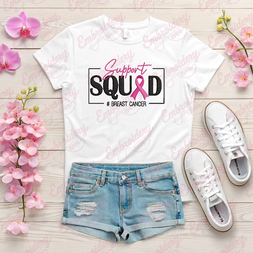 The Support Squad Breast Cancer Awareness Embroidery Design is crafted to deliver a clear and powerful message of solidarity and hope. Featuring carefully detailed embroidery elements that symbolize support and awareness, this design is ideal for creating apparel, accessories, or gifts that honor those affected by breast cancer. Its high-quality stitching ensures durability and a refined appearance, perfect for fundraising events, community outreach, or personal projects. By choosing this design, you contribute to promoting awareness and encouraging unity in the fight against breast cancer, making it both a meaningful and impactful addition to your creative endeavors.