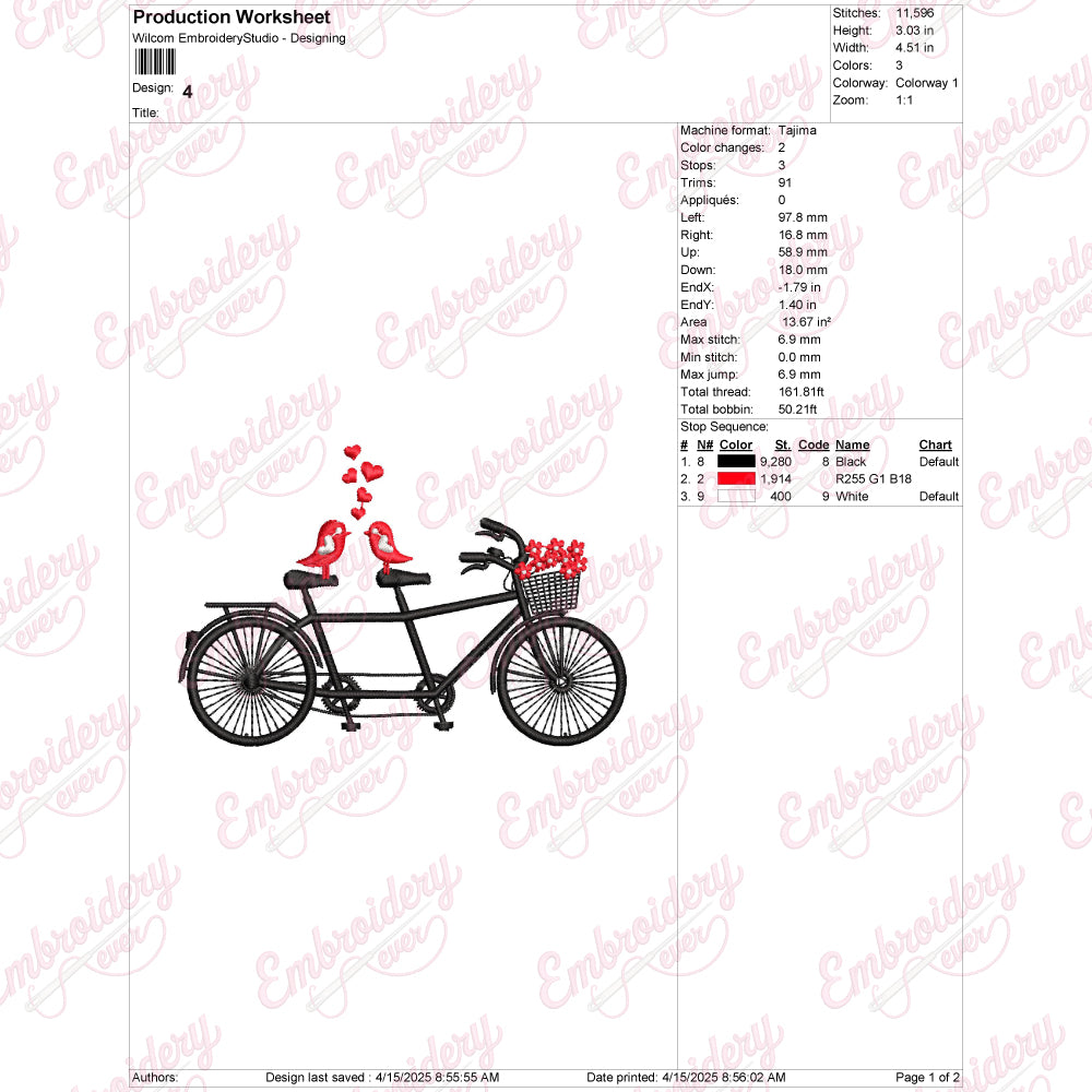 Celebrate the charm of shared journeys with the Tandem Bicycle Embroidery Design. Expertly crafted with intricate stitching, this design captures the unique mechanics and classic silhouette of a tandem bicycle, symbolizing teamwork and adventure. Ideal for embellishing garments, accessories, or home textiles, it offers a refined and sophisticated accent that appeals to cycling enthusiasts and lovers of vintage-style designs alike. The detailed embroidery ensures durability and clarity, allowing the design to maintain its crisp appearance even after multiple washes. Perfect for adding a personal touch that reflects connection and movement, this design elevates any project with artistry and subtle elegance.