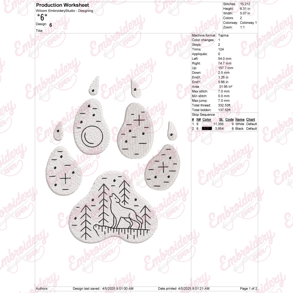 Let your creativity shine with this delightful Wolf Footprints embroidery design!